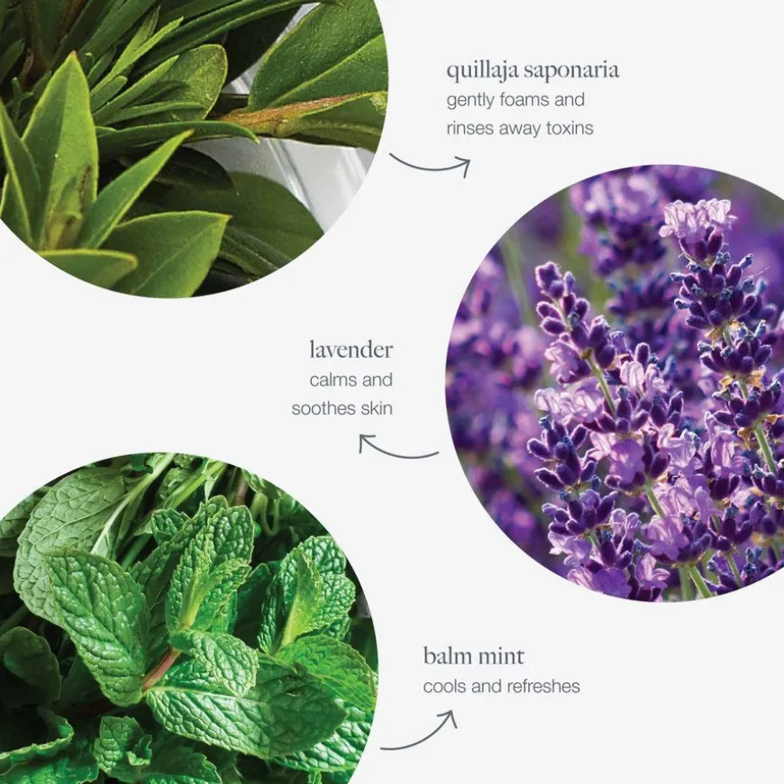 Water/Aqua/Eau, Sodium C14-16 Olefin Sulfonate, Sodium Lauroyl Sarcosinate, Butylene Glycol, Hydroxyethylcellulose, Lavandula Angustifolia (Lavender) Oil, Quillaja Saponaria Bark Extract, Citrus Limon (Lemon) Peel Oil, Melissa Officinalis Leaf Extract, Citrus Aurantium Bergamia (Bergamot) Fruit Oil, Cymbopogon Nardus (Citronella) Oil, Glycerin, Cocamidopropyl Betaine, Sodium Cocoamphoacetate, Hydroxyacetophenone, Cocamidopropyl Hydroxysultaine, 1,2-Hexanediol, Caprylyl Glycol, Propanediol, Citric Acid, O-Cymen-5-Ol, Disodium EDTA, PPG-5-Ceteth-20, Sodium Hydroxide, Sodium Benzoate.