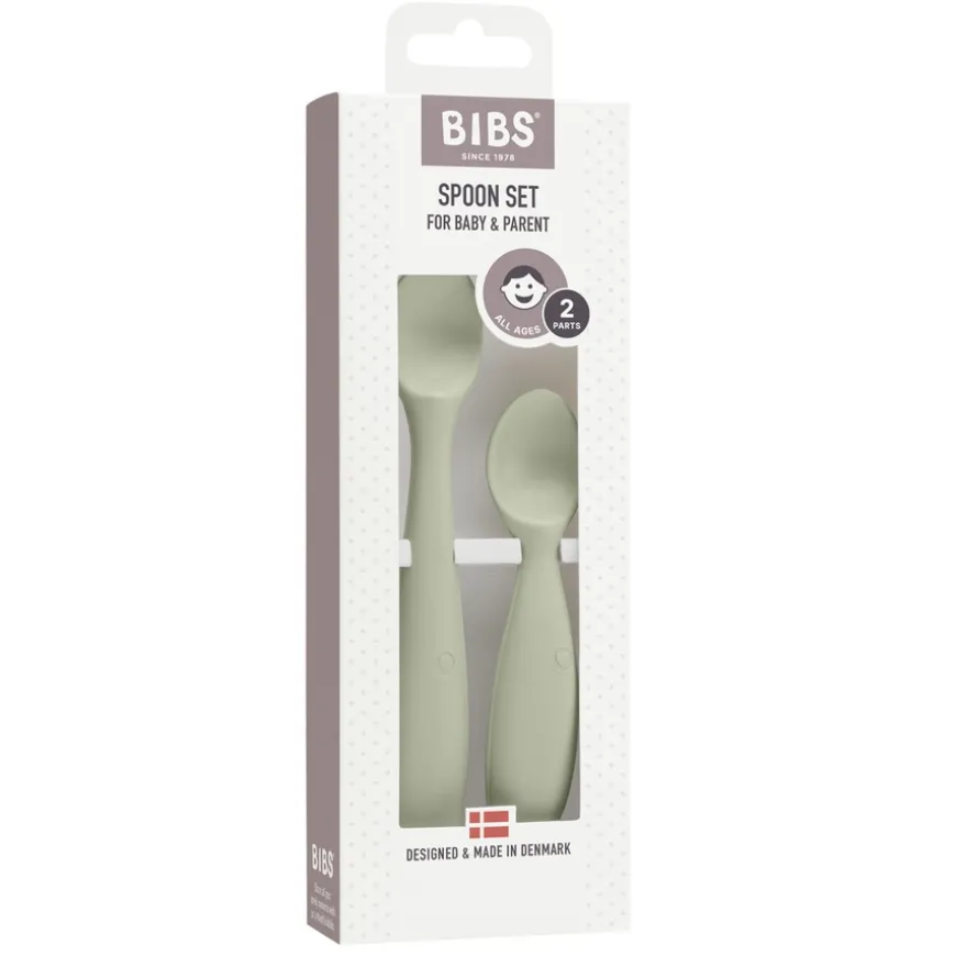 Spoon Set er et sett bestående av to skjeer, en liten skje for barnet og en større for forelderen. Babyskjeen er designet med et sklisikkert og ergonomisk håndtak for best mulig grep. Materialet er mykt, og formen er smal for å beskytte babyens utviklende tenner og ømme tannkjøtt. Den fremmer at barnet skal spise selv og utvikler finmotoriske ferdigheter. Laget av 100% trygt matvaregodkjent materiale som er fritt for BPA og ftalater. Tåler rengjøring i oppvaskmaskinen. Designet og produsert i Danmark. Overholder den europeiske standarden EN 14372.