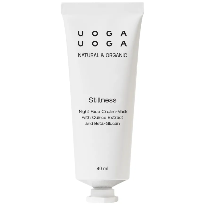 Stillness Moisturising Night Face Cream Mask With Quince Extract And Beta Glucan fra Uoga Uoga er en rik og nærende nattkrem-maske som gir huden intensiv fuktighet og pleie gjennom natten. Den kombinerer fordelene med en krem og en maske, slik at huden våkner mykere, jevnere og mer elastisk. Formelen er beriket med kvedeekstrakt, kjent for sin dokumenterte langvarige fuktighetsgivende og beroligende effekt. Hyaluronsyre med to molekylstørrelser tilfører fuktighet både i dybden og på hudens overflate, og bidrar til å glatte ut fine linjer. Hydrolysert betaglukan hjelper med å gjenoppbygge hudbarrieren og setter i gang hudens naturlige fuktprosess via aquaporinsyntese, mens et naturlig sukkerkompleks stimulerer ceramidsyntesen og styrker hudens evne til å holde på fuktighet. Aloe vera tilfører ekstra vitaminer, antioksidanter og har en beroligende effekt som gjør denne masken perfekt for å roe ned huden etter en lang dag.