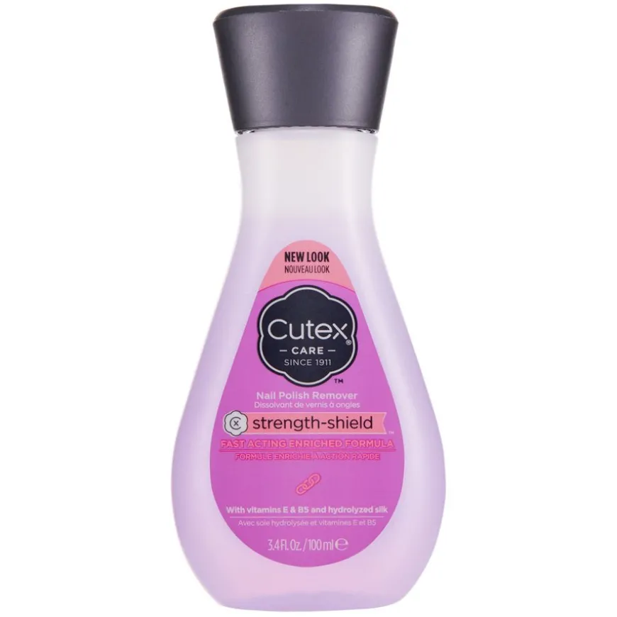 Cutex Strenght-Shield neglelakkfjerner er spesielt utviklet for å opprettholde sunne og sterke negler. Neglelakkfjerneren er ekstremt effektiv og kan brukes til å fjerne selv de mest gjenstridige neglelakkrester. Mens du fjerner neglelakk effektivt, behandler den neglene skånsomt for å gi dem et sunnere og sterkere utseende. Med sitt unike innhold av vitamin B5 og E-vitamin er Strength-Shield spesielt nærende for tørre negler.