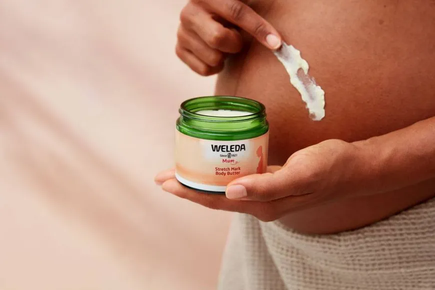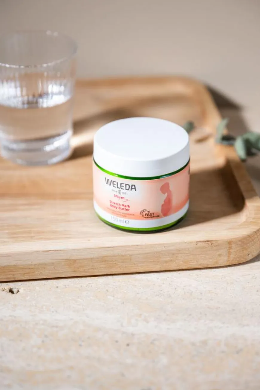 Stretch Mark Body Butter er et kroppssmør for å motvirke og redusere strekkmerker i kombinasjon med en lett massasje. Med naturlige ingredienser som mykgjørende kakaosmør og sheasmør, som styrker lipidbarrieren, sammen med centella asiatica, som forbedrer hudens elastisitet.