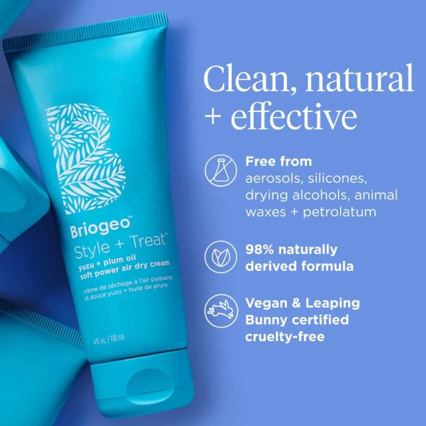 Style & Treat Yuzu & Plum Oil Air Dry Cream er en leave-in stylingkrem som gir myk hold og naturlig definisjon uten bruk av varmeverktøy. Denne lufttørkende kremen er formulert med 98 % ingredienser med naturlig opprinnelse, inkludert B-vitaminer, yuzuekstrakt og plommeolje, som tilfører fuktighet og næring til håret. Produktet temmer frizz og småhår, og tørker uten å etterlate håret stivt, klissete eller flassende. Kremen gir et lett og glansfritt resultat og er ideell for deg som ønsker en enkel, varmefri styling. Passer for alle hårtyper og teksturer. Produktet er vegansk og Leaping Bunny-sertifisert.