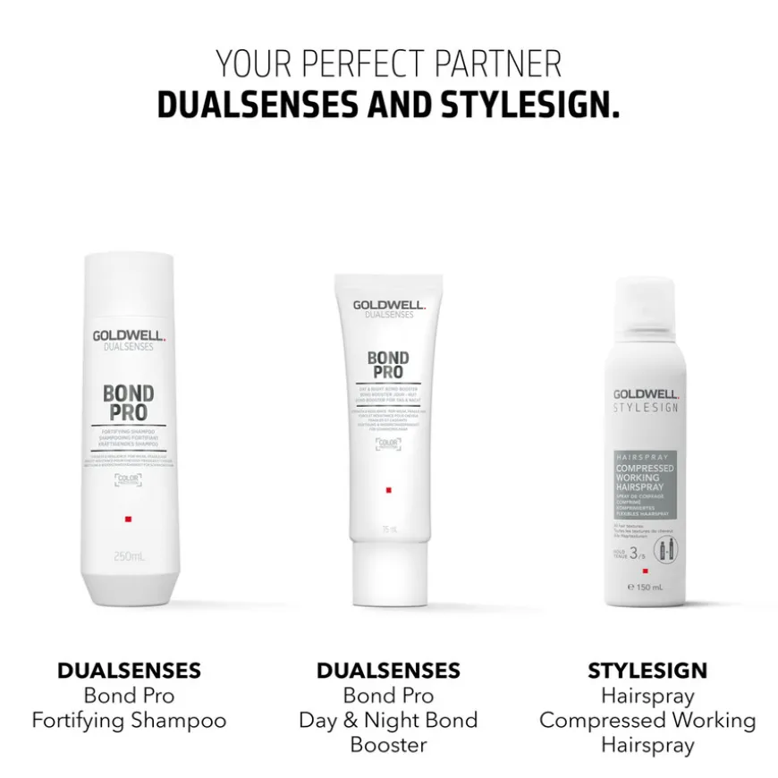 StyleSign Compressed Working Hairspray er en mikrofin, målrettet spray som gir umiddelbart medium hold og intens glans, med beskyttelse mot luftfuktighet og frizz i opptil 72 timer. Konsentrert for å gi samme antall påføringer med halve størrelsen. Produktet har en vegansk formel, er CO2 kompensert og dermatologisk testet. Holdfaktor 3/5 og glansnivå 2/3. For alle hårteksturer.