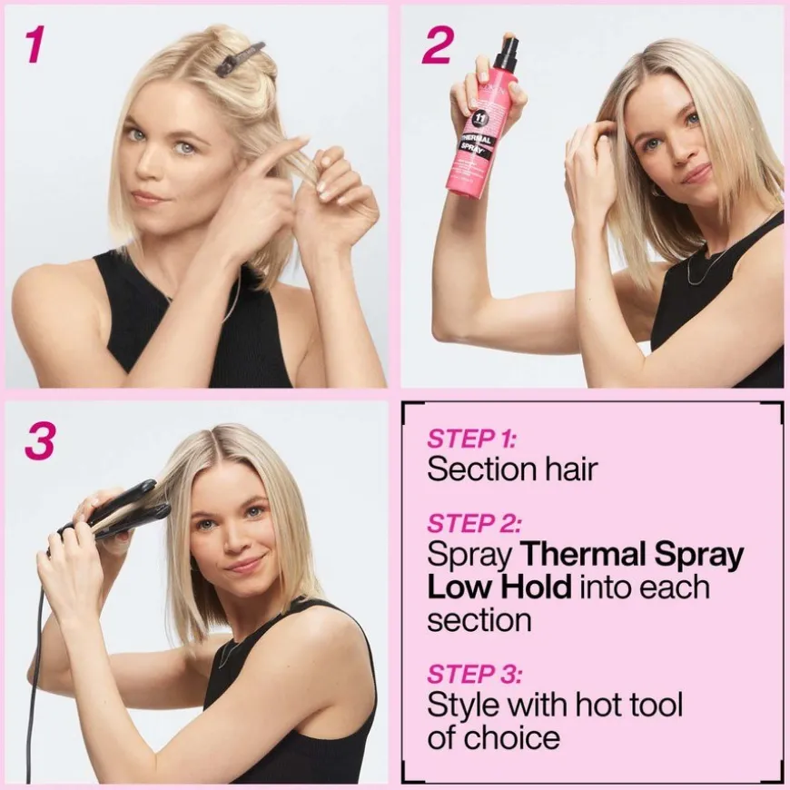 Vil du beskytte håret mot varmestyling? Thermal Spray fra Redken beskytter håret mot varme, tilfører glans og reduserer krusete hår. Denne varmebeskyttende sprayen beskytter håret mot varme fra stylingverktøy opp til 450ºF/230°C, samtidig som den tilfører glans og beskytter mot fukt. Produktet er formulert med Heat Re-styling teknologi som beskytter håret etter bare én bruk, slik at du kan style om mellom hver hårvask. Den lette formelen passer godt for tynt hår.