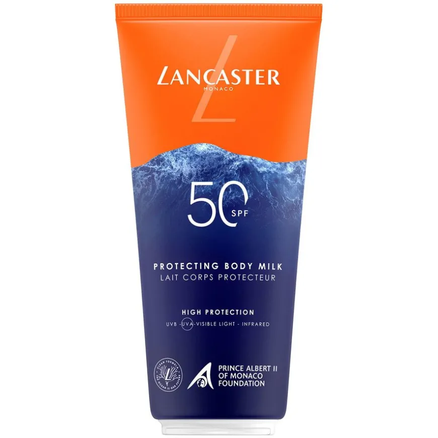 Protecting Body Milk er en limited edition som Lancaster har laget for å støtte Prince Albert II of Monaco Foundations oppdrag. Lancaster legger deres ikoniske, rene Body Milk SPF50-formel i øko-designet emballasje. Full Light-teknologien beskytter, utover UVB og UVA, mot synlig lys og infrarøde stråler for optimal hudbeskyttelse. Den unike formelen gir ikke bare høy beskyttelse, men hjelper også med å reparere huden mot solinduserte skader og gir en gylden brunfarge på halve tiden av soleksponering*. Røret bruker 54 % mindre materiale** med sin reduserte hylse og hette og inneholder minimum 49 % resirkulert plast. Denne lette og fuktighetsgivende SPF50 kroppsmelken er lett å påføre. Den absorberes øyeblikkelig, blir usynlig på huden og etterlater en fløyelsmyk finish. Huden din føles næret med en sunn brunfarge. Denne kroppsmelken kommer i et begrenset opplag, laget som et spesielt møte mellom solen og havet. Ved å slå oss sammen med Prince Albert II of Monaco Foundation gjennom denne begrensede utgaven, bidrar vi til å finansiere stiftelsens middelhavsprogram, et sted som ligger spesielt nært våre hjerter på grunn av Lancasters monegaskiske røtter.