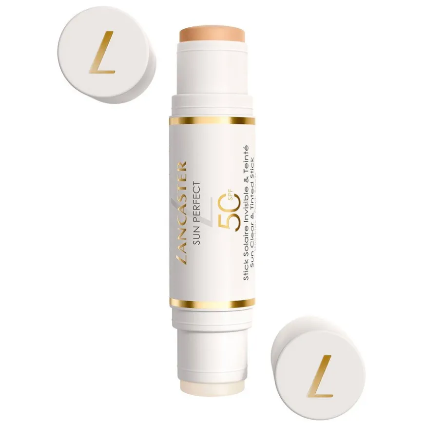 Sun Perfect Sun Clear & Tinted Stick SPF50 er en dobbeltsidig pinne som gir en umiddelbar mattende effekt med sin klare side og en umiddelbar uskarp effekt med sin tonede side. Sun Perfect er Lancasters mest avanserte globale solpleie- og antialdringsserie, som kombinerer solpleie- og hudpleieekspertisen for bruk hele året. Dens Full Light Technology og Anti-ageing Technology gir den bredeste solbeskyttelsen samtidig som den forebygger og hjelper til med å synlig korrigere rynker, fine linjer og mørke flekker.