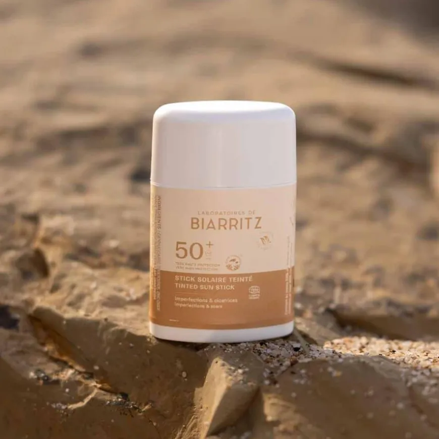 Suncare Tinted Sunscreen Stick SPF50+ er en praktisk, tonet solbeskyttelse for sensitive områder i ansiktet og på kroppen. Den gir umiddelbar beskyttelse mot UVA- og UVB-stråler takket være fysiske mineralfiltre og Alga-Gorria®, et patentert ekstrakt fra rødalger kjent for sine antioksidantegenskaper. Stift-formen gjør den enkel å påføre, og den passer perfekt til beskyttelse av områder som flekker, melasma, nye arr og andre utsatte hudpartier.