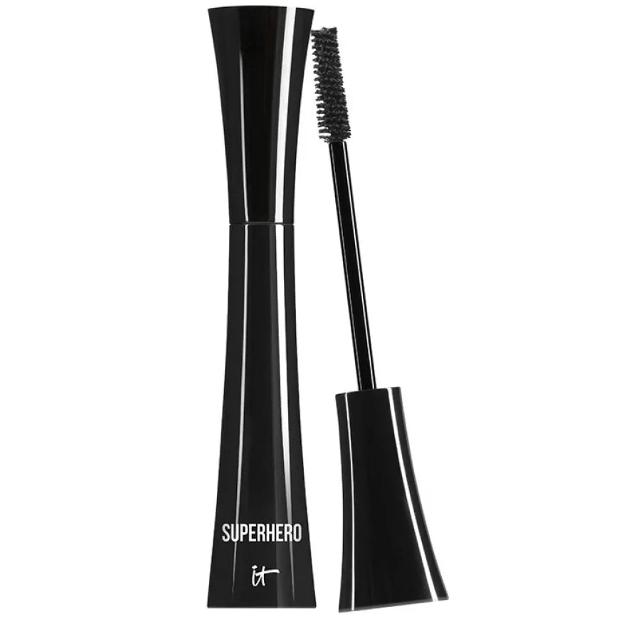 IT Cosmetics Superhero Mascara gir vippene dine superkrefter i ett enkelt strøk! Pleiende ingredienser og supersorte pigmenter blandes perfekt og kombineres med Lash-Changing Power Brush, som griper hvert enkelt vippehår. Vippene dine blir synlig lengre, bredere og mer voluminøse.Superhero Mascara er utviklet i samarbeid med hudpleieeksperter for å sikre at vippene dine får masser av pleie.