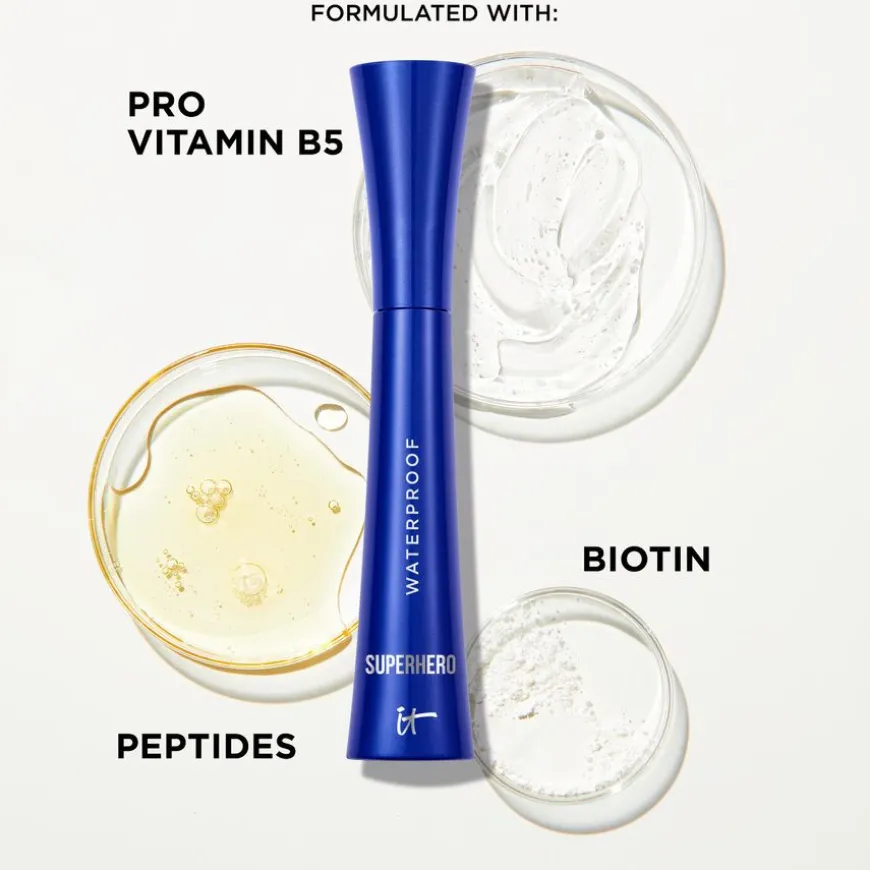 IT Cosmetics Superhero Waterproof Mascara er en ekstra volumgivende mascara som hverken drysser eller smitter av, og i tillegg er enkel å fjerne. Sitter i 24 timer, slik at du er klar for livet! Gi øyevippene dine superhelt-krefter med Superhero Waterproof Mascara – en volumgivende mascara, nå i vannfast utgave. Den fantastiske mascaraen gir volum, lengde og elastikk til vippene, i tillegg til at den:
