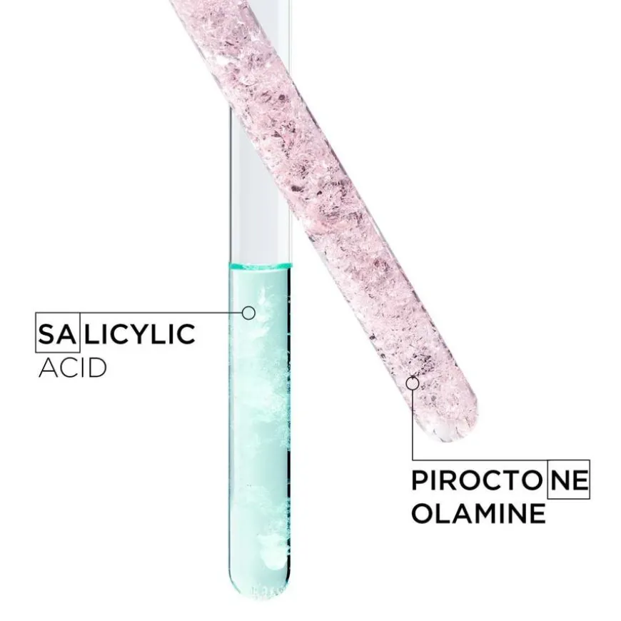 - Piroctone Olamine: Fjerner bakteriene som skaper flass for å redusere hastigheten på cellefornyelse.
