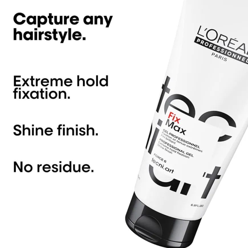 L’Oréal Professionnel TecniArt. Fix Max er en hårgelé med UV-filter og ekstra kraftig hold. Hårgelén er perfekt for korte, glatte eller formede, rufsete frisyrer. L’Oréal Professionnel TecniArt. Fix Max gir langvarig kontroll uten å tynge ned eller føles klebrig. Hold 6.