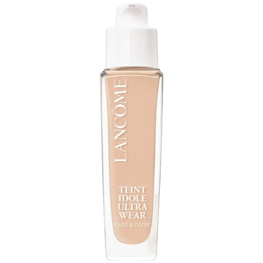 Lancôme Teint Idôle Ultra Wear Care & Glow 24H Healthy Glow Foundation er en glødgivende foundation som gir middels, byggbar dekning og en frisk, strålende finish som varer i opptil 24 timer. Den unike formelen inneholder 82 % hudpleieingredienser, inkludert hyaluronsyre, som tilfører fuktighet gjennom hele dagen og gir en sunn, naturlig glød. Foundationen fremhever ansiktstrekkene og fanger lyset på en naturlig måte, samtidig som den føles lett og behagelig på huden. Den er egnet for alle hudtyper, inkludert tørr og sensitiv hud, og kommer i 30 ulike nyanser for en perfekt match.