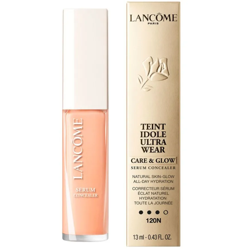 Lancôme Teint Idole Ultra Wear Care & Glow Serum Concealer er en serum-concealer som gir en langvarig naturlig glød. Concealeren sitter i 24 timer og tilfører fuktighet. Middels byggbar dekning for en naturlig og sunn glød som skjuler, visker ut, lysner og løfter øyne og ansikt. Inneholder 81 % styrkende hudpleieserum. En fantastisk glødgivende sammensetning som gir naturlig utseende hud i 24 timer. Teint Idole Ultra Wear Care & Glow Serum Concealer beriket med hyaluronsyre og ceramider, slik at huden blir fuktet hele dagen. Ikke bare fremhever denne concealeren ansiktstrekkene dine og fanger lyset naturlig, men den holder seg også frisk hele dagen uten at den blekner eller legger seg i fine linjer. Dag for dag fremstår huden mer strålende, glattere og klarere.