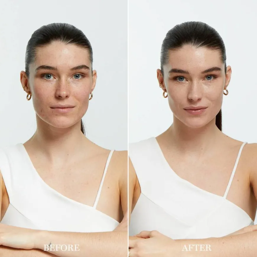 - Påfør en dose av den utglattende og fuktighetsgivende foundationprimeren Priming Serum på renset hud for å forlenge hold på foundation og concealer.