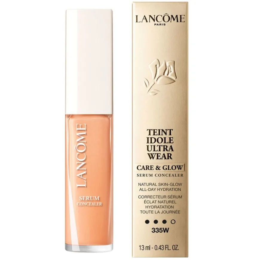 Lancôme Teint Idole Ultra Wear Care & Glow Serum Concealer er en serum-concealer som gir en langvarig naturlig glød. Concealeren sitter i 24 timer og tilfører fuktighet. Middels byggbar dekning for en naturlig og sunn glød som skjuler, visker ut, lysner og løfter øyne og ansikt. Inneholder 81 % styrkende hudpleieserum. En fantastisk glødgivende sammensetning som gir naturlig utseende hud i 24 timer. Teint Idole Ultra Wear Care & Glow Serum Concealer beriket med hyaluronsyre og ceramider, slik at huden blir fuktet hele dagen. Ikke bare fremhever denne concealeren ansiktstrekkene dine og fanger lyset naturlig, men den holder seg også frisk hele dagen uten at den blekner eller legger seg i fine linjer. Dag for dag fremstår huden mer strålende, glattere og klarere.