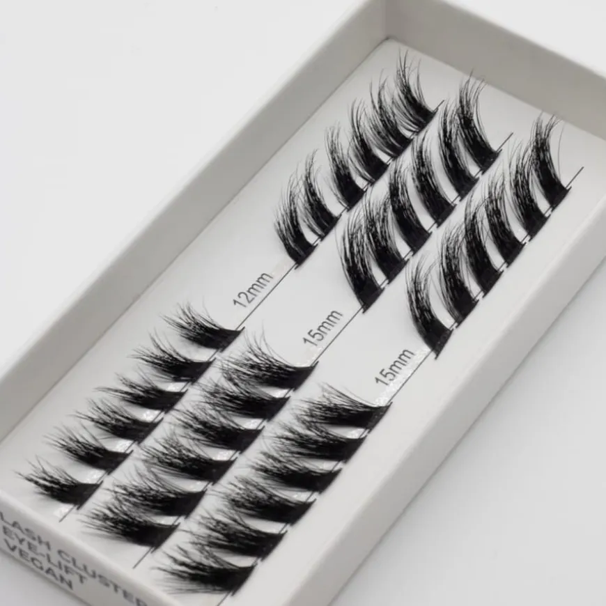 blik That B Lash Clusters er et sett med løsvipper som gir et løft til øynene og åpner opp blikket med dette spesielle vippe-designet, med et komfortabelt bånd laget av plantefiber, tilgjengelig i størrelsene 12mm og 15mm. Tilpassbare falske vipper – skap din egen look.