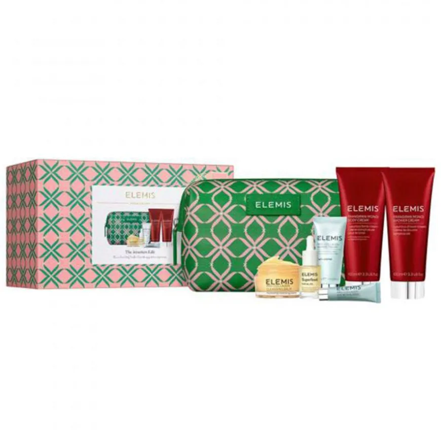 The Jetsetters Edit er et luksuriøst reisesett for ansikt og kropp. Produktene kommer i en lekker toalettveske.