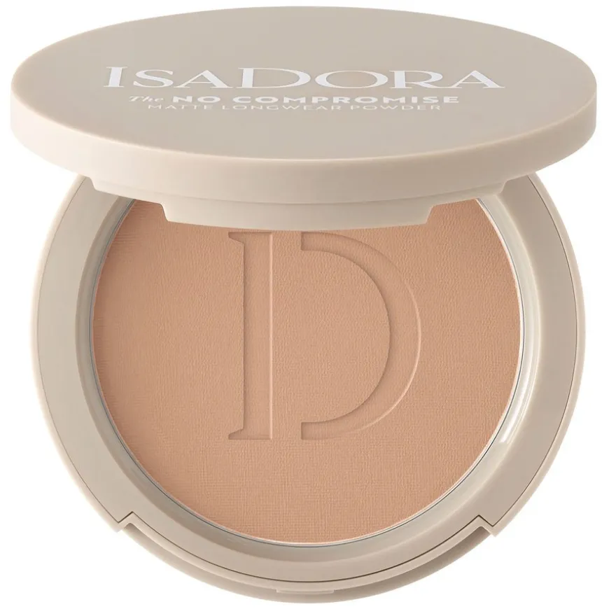 The No Compromise Matte Longwear Powder er et presset, langvarig pudder med medium til full dekning og matt finish. Det er her for å bli og krever ingen kompromisser i skapelsen av din matte look: The No Compromise Powder. Dette neste generasjons pressede pudder gir en medium til høy dekning og en myk matt finish med en kremmyk tekstur. Det er langvarig, overføringsbestandig og gir en soft-focus og utjevnende effekt for å holde kontroll på oljete eller blanke områder i ansiktet. På grunn av innovativ teknologi i formuleringen, gjør pudderet huden myk og fuktet, slik at du kan beholde den feilfrie matte looken hele dagen, mens huden føles frisk og behagelig matt. Vegansk, klinisk testet, fri for duftstoffer, egnet for sensitiv hud og alltid dyrevennlig.