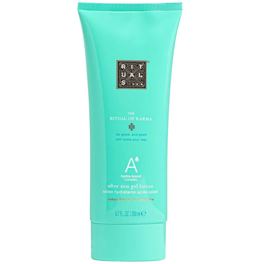 Langvarig soleksponering kan tørke ut huden betydelig. For å motvirke dette, er en aftersun med aloe vera essensielt. The Ritual of Karma After-Sun Gel Lotion har en sorbet-lignende tekstur som umiddelbart kjøler ned, beroliger og rehydrerer huden. Denne lotionen er beriket med det intensivt fuktighetsgivende Hydra-Boost Complex, som inneholder aloe vera for sine beroligende egenskaper, alger for deres næringsrike fordeler, og squalane, som effektivt fukter og mykgjør huden mens det reduserer tegn på solskader.