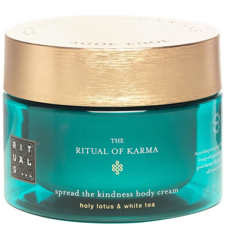 The Ritual Of Karma Body Cream er en eksklusiv og nærende kroppskrem med en søt duft av lotus og hvit te.