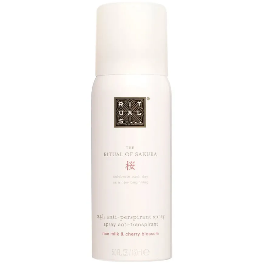The Ritual Of Sakura Anti-Perspirant Spray er en deodorantspray som beskytter mot svette og kropplukt i 24 timer. Med en elegant duft av kirsebærblomst.