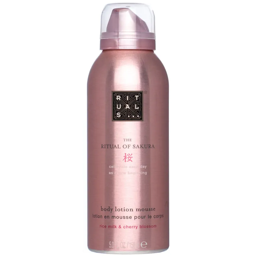 The Ritual Of Sakura Body Cream Mousse gir silkemyk, glødende hud med sin luksuriøse mousse-til-olje-formel. Beriket med rismelk, som mykgjør og gir en sunn glød, og kirsebærblomst, som pleier og jevner ut hudtonen. Den lette moussen forvandles til et nærende oljelag som effektivt låser inn fuktighet, samtidig som den omslutter huden med en delikat, floral duft.