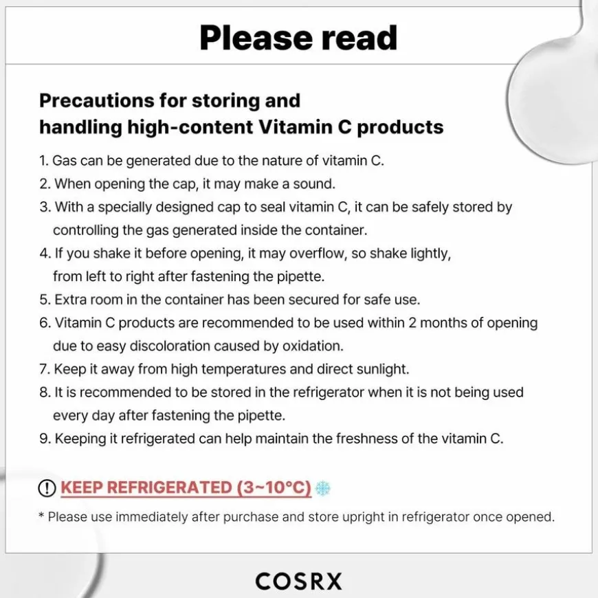 - Ascorbic acid 23%:Mest aktive og reneste formen for Vitamin C (gir glød og jevn hud).Forbedrer tegn på aldring.