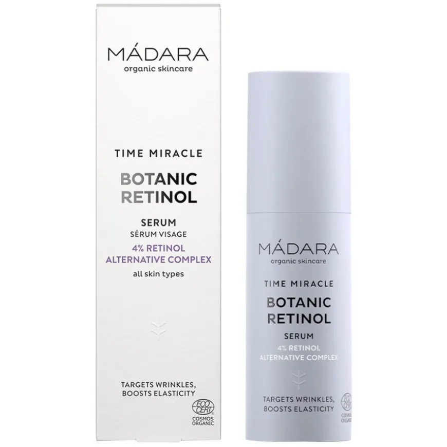 Time Miracle Botanic Retinol Serum er et banebrytende serumet er beriket av et 4 % plantebasert alternativ til retinolkompleks. Det korrigerer aldringstegn like effektivt som syntetisk retinol, men uten å forårsake irritasjon eller tørrhet.