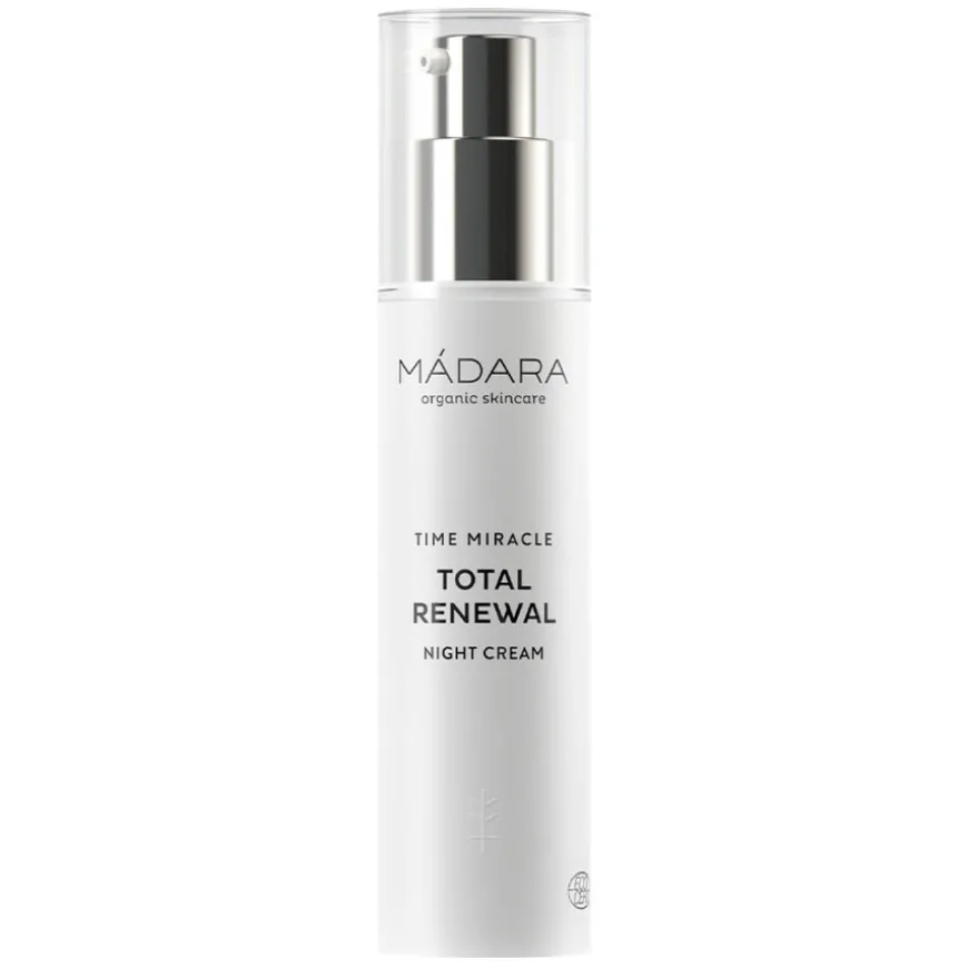 Time Miracle Total Renewal Night Cream er en nærende nattkrem som gir huden din guddommelig komfort og mykhet. Gjenoppretter utseendet til frisk og strålende hud over natten. Den kraftige rynkemotvirkende formelen med multimolekylær hyaluronsyre, balanserende fysio-sink, fuktighetsbevarende betain og cellulært biokompleks av antioksidantrike ekstrakter av 7 nordlige planter retter seg mot tørrhet og aldringstegn. Den rike teksturen sikrer komfort og pleie hele natten for silkemyk, strålende og godt uthvilt hud.