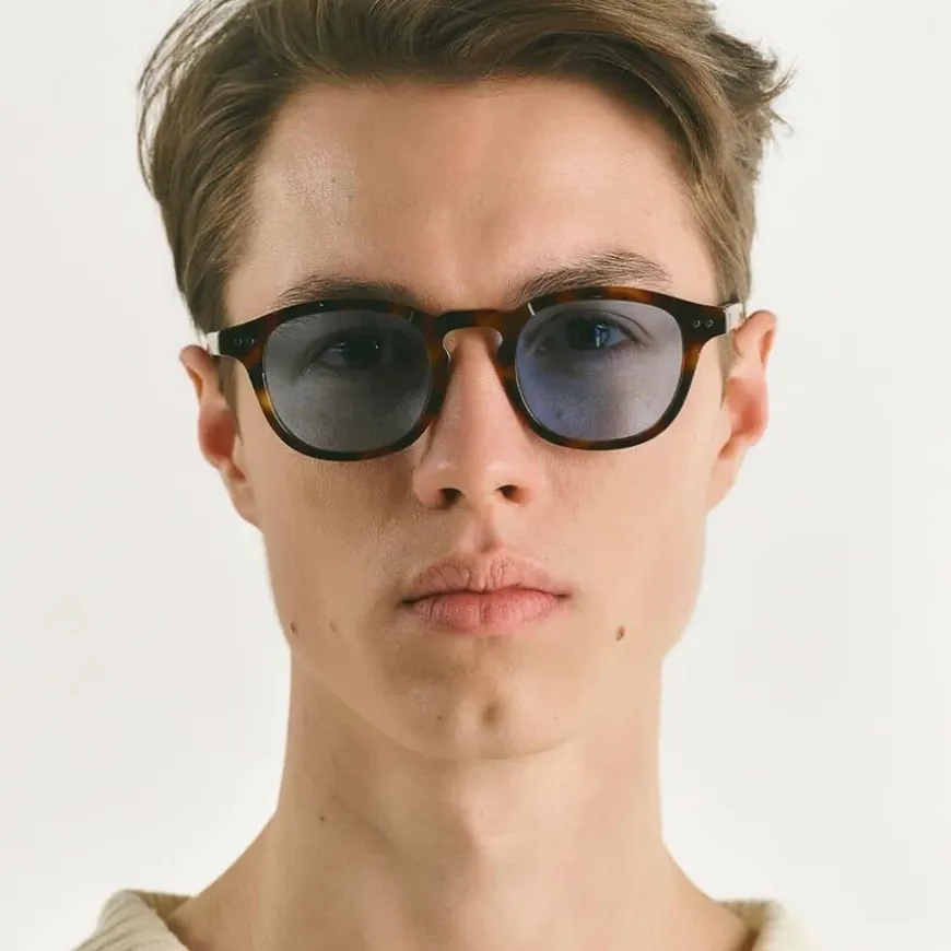 Todd Tortoise Blue kombinerer en tidløs tortoise-innfatning med diskrete blå detaljer, noe som gir et unikt og elegant design. Den klassiske runde silhuetten forsterkes av en konstruksjon i bærekraftig bioacetat, med en lett kurvatur som følger ansiktskonturene for en naturlig passform.