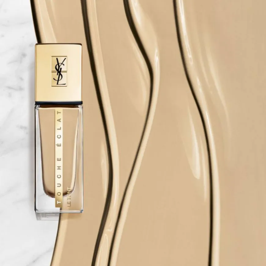 Yves Saint Laurent Touche Éclat Le Teint Foundation er en Glow Liquid Foundation som tilfører fuktighetspleie og gir middels dekkevne i 24 timer med en behagelig følelse av at huden får puste. YSL Touche Éclat Le Teint er beriket med ekstrakt fra ringblomst og stokkrose, og vitamin E. Hudpleieproduktet gir en jevn og optisk jevn hudtone med sunn og naturlig glød.