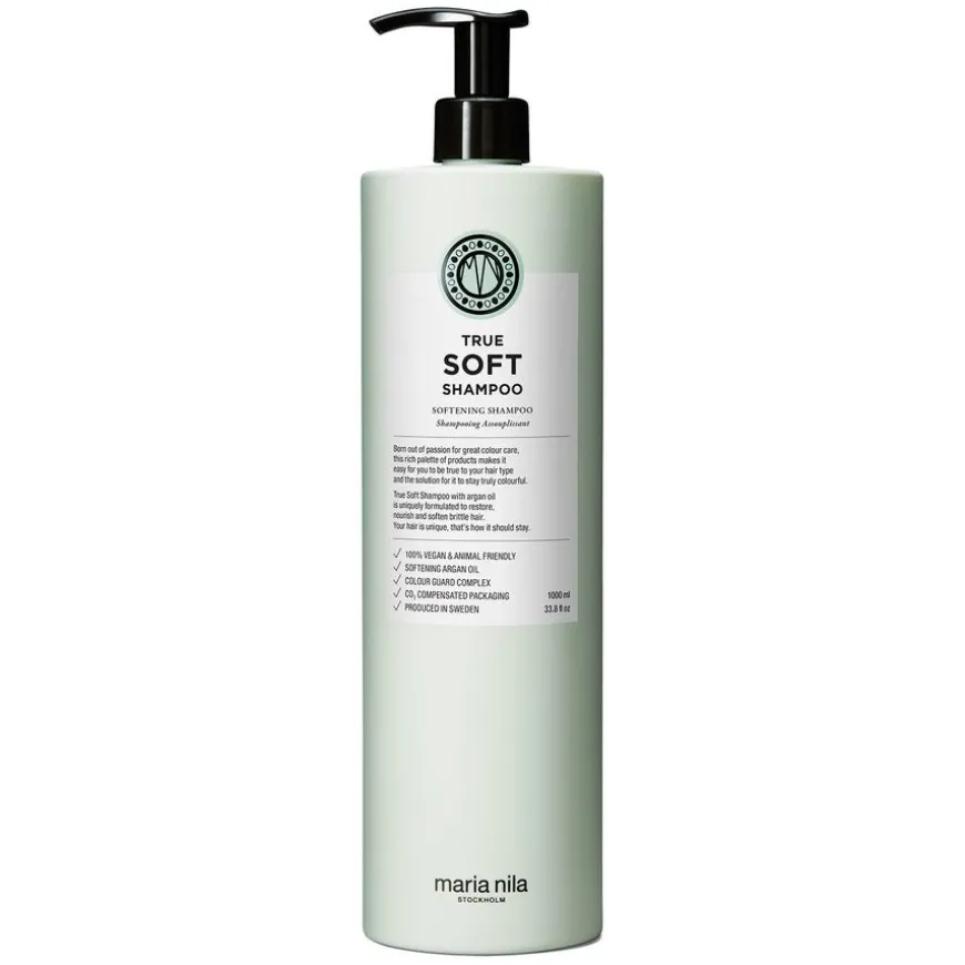True Soft Shampoo er en shampoo som fukter og gjenoppliver tørt og krusete hår. Med ingredienser som arganolje og antioksidanter vil disse produktene bevare fuktighet, bekjempe statisk elektrisitet og gi glans.