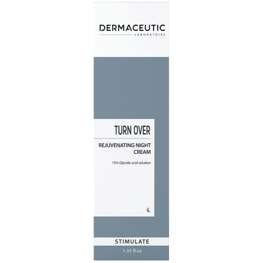 Turn Over er en nattkrem med høy konsentrasjon av glykolsyre. Dette er en sterk anti-age-krem som stimulerer cellefornyelsen og motvirker rynker og fine linjer. Den eliminerer cellerester og døde hudceller fra hudoverflaten, og etterlater huden myk og med et yngre utseende.De første dagene når kremen påføres kan det stikke litt i huden de første to minuttene etter påføring. Dette er fordi huden ikke er helt vant til glykolsyren. På morgenen vil huden føles utrolig glatt. Etter å ha brukt produktet i en liten periode, kan man oppleve lett flassing, noe som vil forsvinne. Dette kommer av at cellefornyelsen blir økt, og huden fornyes.