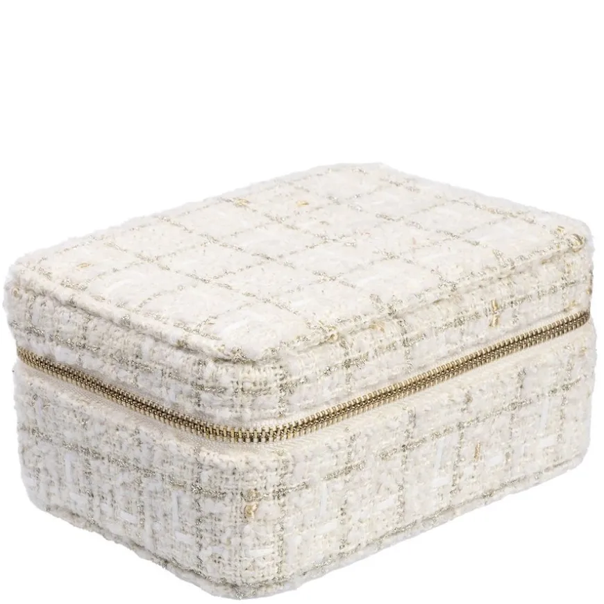 Tweed Jewellery Box er et søtt smykkeskrin med praktiske inndelinger og en løs skuff inni. Her kan du organisere smykkene dine til reise.