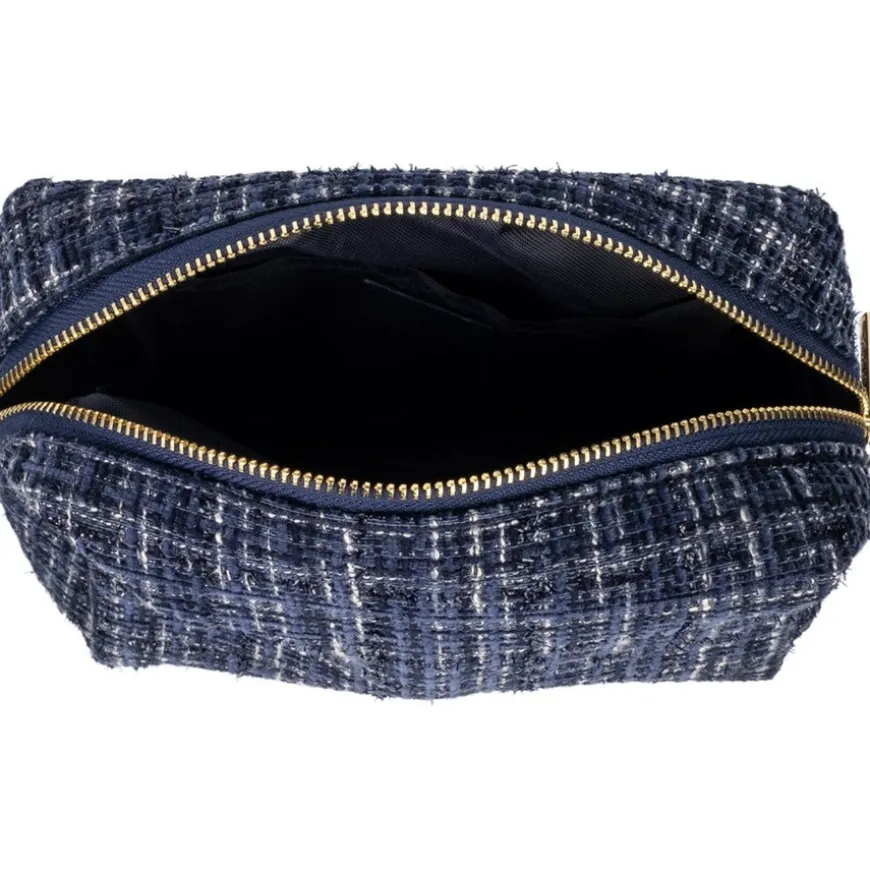 Tweed Make-Up Pouch Small er en stilig og funksjonell liten veske, laget av klassisk tweedstoff som gir den et tidløst utseende. Vesken har detaljer i slitesterk sinklegering, noe som tilfører et luksuriøst preg. Med en størrelse på 17 x 13 x 8 cm er den perfekt for å oppbevare små nødvendigheter, enten du er på farten eller vil organisere tingene dine i større vesker. Denne vesken kombinerer praktisk bruk med elegant design.