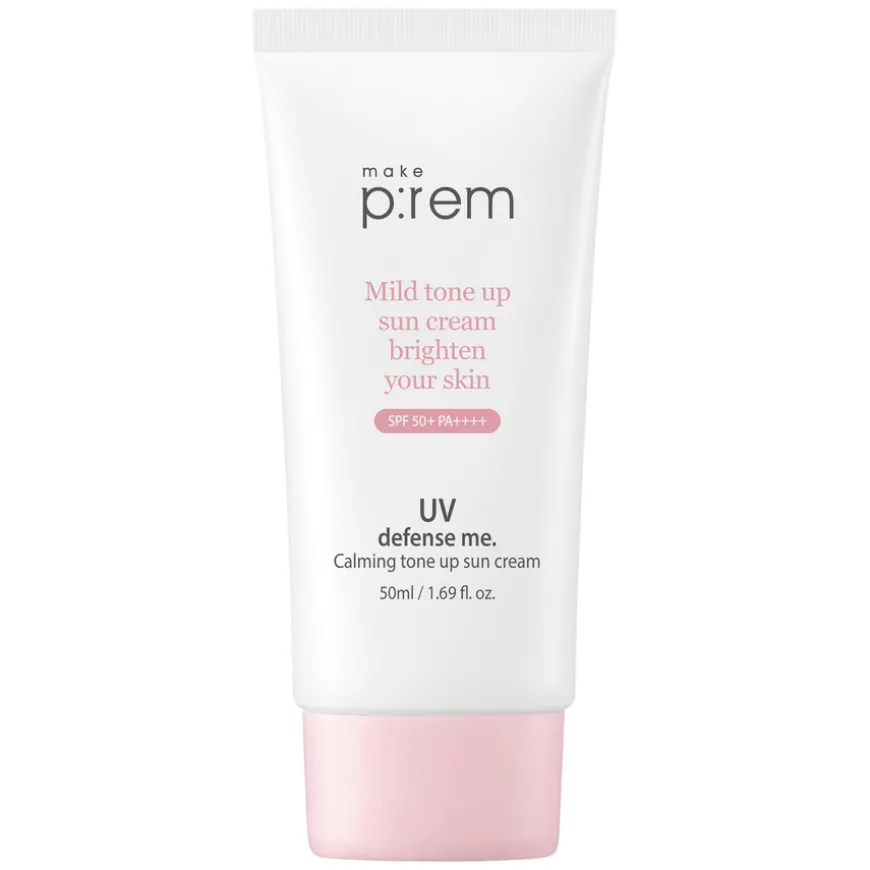UV Defende Me Calming Tone Up Sun Screen er en mineralbasert solkrem med en tonende effekt. Solkremen har en SPF50+ PA++++ og inneholder kalamin som bidrar til å berolige huden og gir en naturlig jevn og strålende finish. Perfekt å bruke både til foundationfri sminke eller for å få en jevn hudtone før sminke. Ikke-irriterende fysisk solkrem som er effektiv for beroligende pleie og gir en naturlig hudtone. Den hurtigabsorberende solkremen inneholder bambusvann som fukter huden uten å etterlate en hvit hinne.