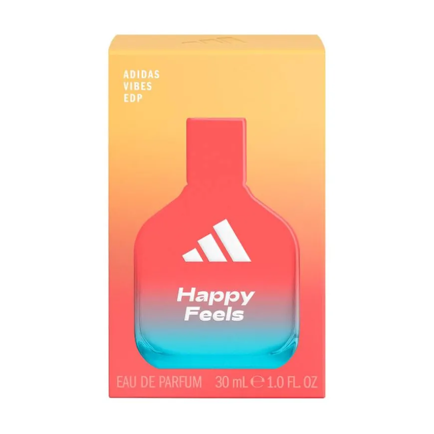 Føl vibrasjonene og kjenn deg oppløftet med de nye duftene fra Adidas. Vibes Happy Feels Eau de Parfum er utviklet for å gi en positiv følelse*. Positiv og glitrende, som fanger øyeblikkets glede akkurat som de glade sommerdagene. Med grapefrukt og noter av sjasmin. Den langvarige duften inneholder naturlige essensielle oljer fra grapefrukt og rosa pepper, har en vegansk formel og er dermatologisk testet. Emballasjen er laget av resirkulerte materialer. Oppdag hele Vibes-duftkolleksjonen med flere stemningsfylte dufter.