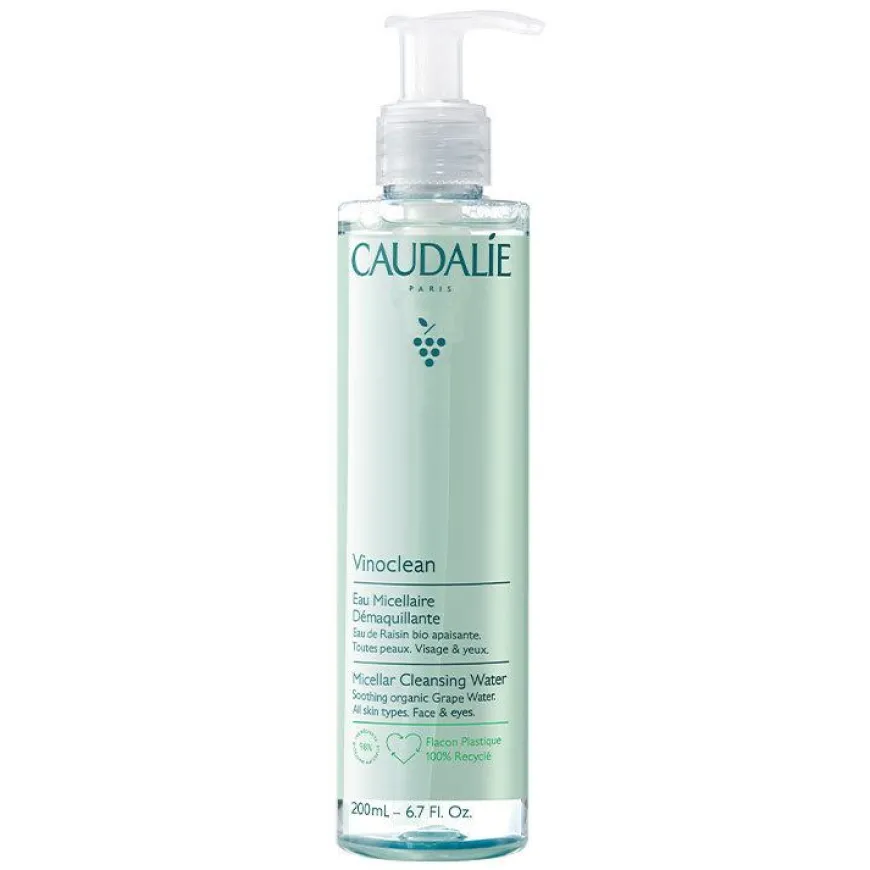 Caudalie Vinoclean Micellar Water renser og fjerner sminke fra ansikt og øyne. Vegansk druevann hjelper til med å fukte og berolige huden, slik at selv den følsomme huden og øynene tåler Caudalie Micellar Water. Etter bruk føles huden myk, ren og klar serum og krem.