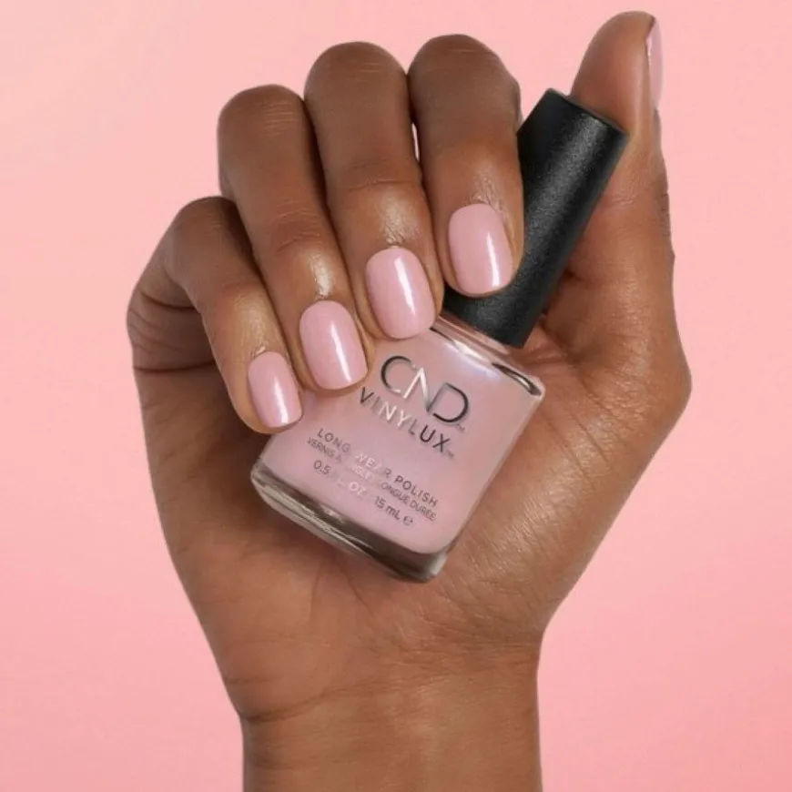 VINYLUX Long Wear Polish er en neglelakk med ukelang holdbarhet og pleiende ingredienser som ikke trenger underlakk, fra det verdensledende salongmerket CND VINYLUX. Den heldekkende lyserosa fargen med en kald undertone gir et friskt og moderne utseende med perlemorsskimmer. Et stilrent og sofistikert valg.