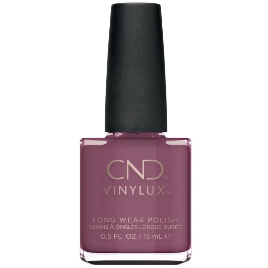 VINYLUX Long Wear Polish er en neglelakk med ukelang holdbarhet og pleiende ingredienser som ikke trenger underlakk, fra det verdensledende salongmerket CND VINYLUX. Denne stilfulle, mørke mauve-fargen er en perfekt blanding av lilla, brune og grå nyanser. Den heldekkende, kremet finishen gir et sofistikert og elegant uttrykk.