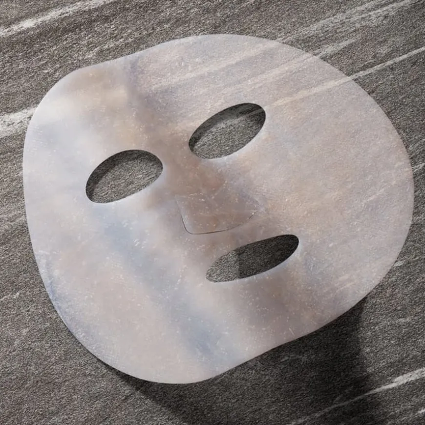 - Fjern masken fra plastfilmen og påfør den på ren hud.