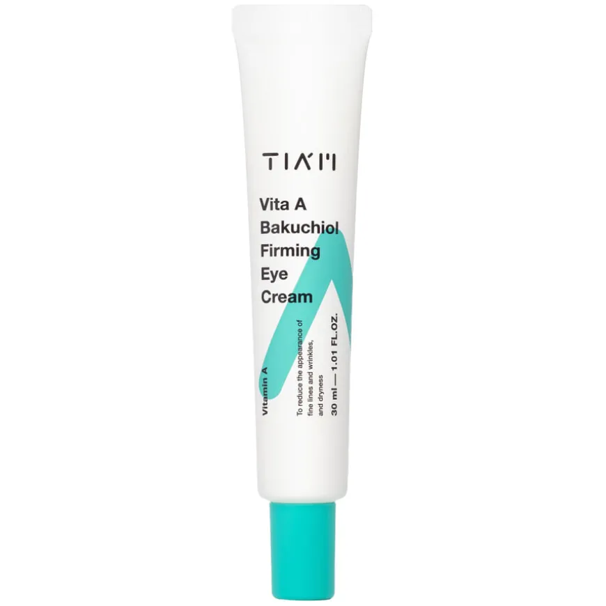TIAM Vita A Bakuchiol Firming Eye Cream er en anti-aldrings øyekrem formulert med vitamin A, bakuchiol og et 5-peptidkompleks for å redusere rynker, mørke ringer og hevelser rundt øynene. Vitamin A forbedrer hudens tekstur og elastisitet, mens bakuchiol, et plantebasert alternativ til retinol, stimulerer kollagenproduksjonen og reduserer synlige aldringstegn. 5-peptidkomplekset styrker hudbarrieren og forbedrer hudens fasthet. Produktet er duftfritt og egnet for alle hudtyper, inkludert sensitiv hud.