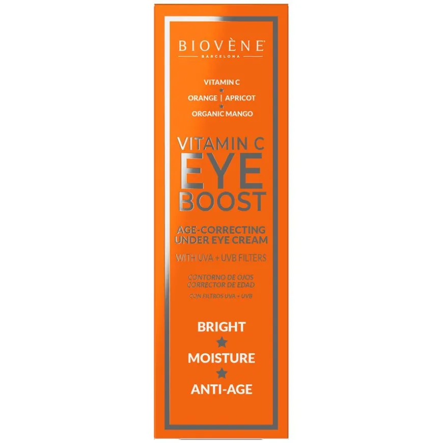 Vitamin C Eye Boost Age-Correcting Eye Treatment With UVA + UVB Filters er enfuktighetsgivende dag- og nattbehandling for hudforyngelse under øynene med vitamin C og organisk mango som bidrar til å minimere forekomsten av mørke ringer, fine linjer og friske opp en sliten hud. Vitamin C lysner opp hudtonen og reduserer forekomsten av aldringstegn. Formulert med UVA + UVB-filtre for ekstra støtte på dagtid.
