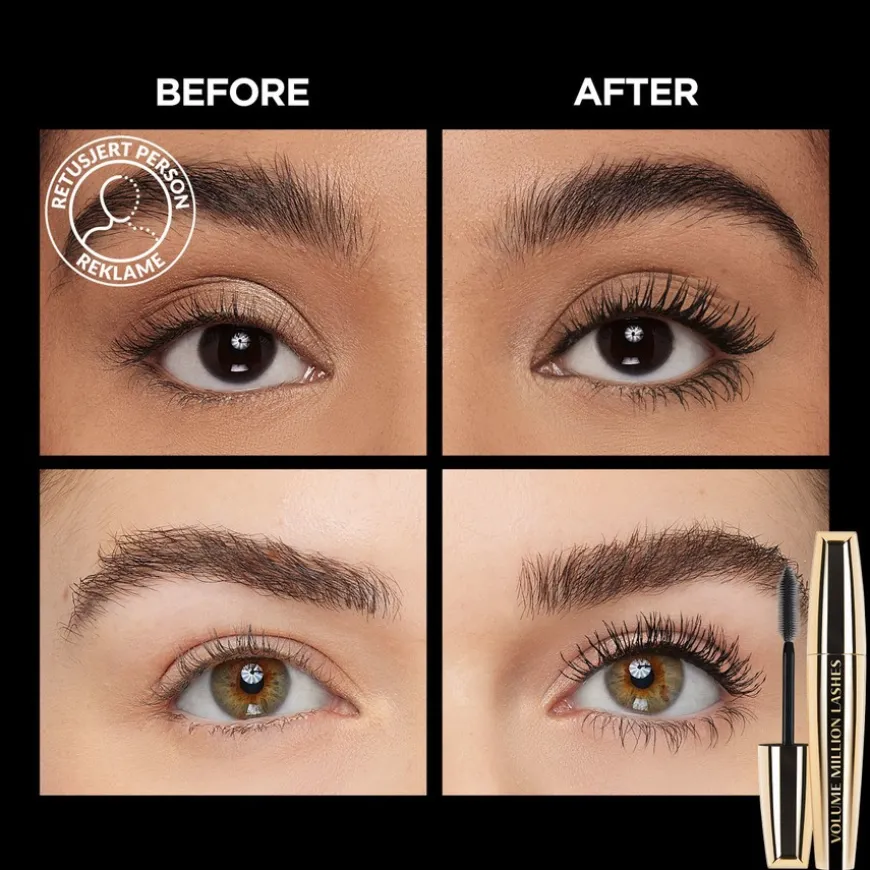 L’Oréal Paris Volume Million Lashes Mascara er en volummascara som skiller vippene for et perfekt resultat uten klumper! Den ikoniske gummibørsten når og skiller hver eneste hårstrå fra rot til tupp med sine korte og lange børstehår. Formelen er beriket med svarte pigmenter, kameliaolje og ekstrakt fra svart orkidé og føles myk på vippene dine. Bygg volum med flere lag, eller skap et naturlig utseende med et tynt lag. Hvilket utseende velger du i dag? La Million Lashes Mascara realisere det!