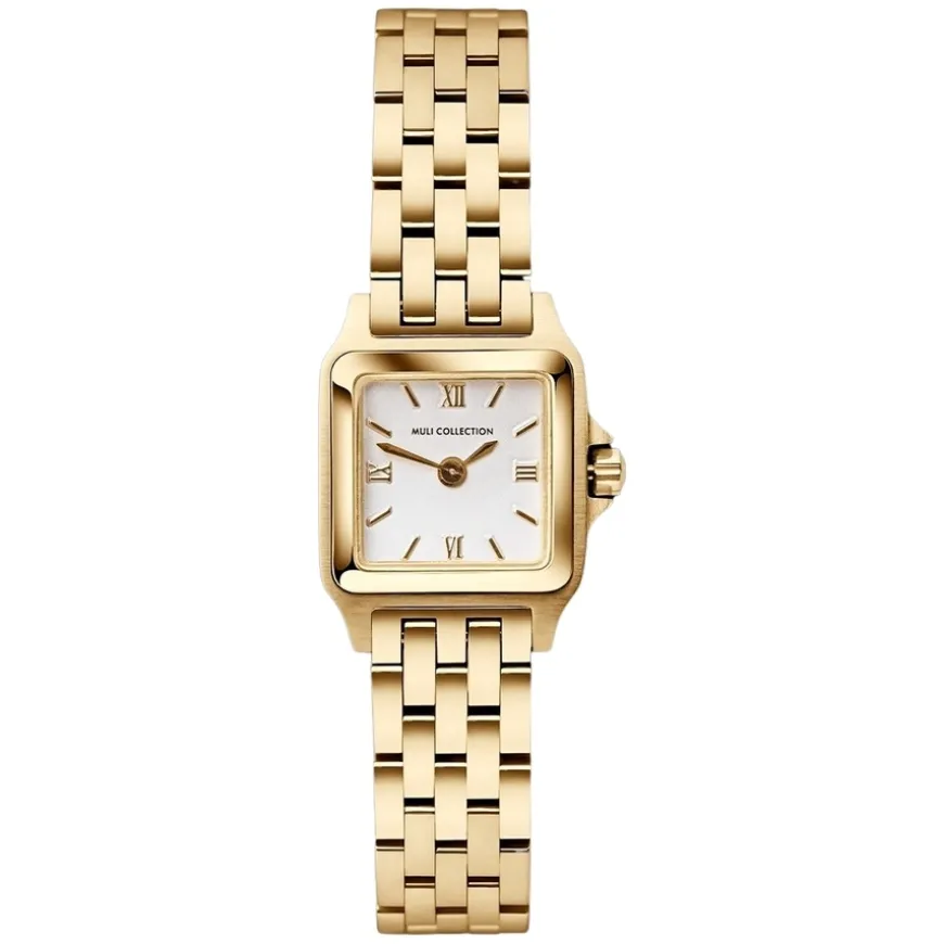 Muli Collection Watch Gold er en elegant og klassisk klokke med et tidløst vintage-design, perfekt for daglig bruk og et nydelig tilskudd til din smykkekolleksjon. Laget av 24k gullbelagt 316L rustfritt stål og utstyrt med ripebestandig safirkrystallglass, er denne klokken både holdbar og sofistikert. Med en vanntetthet på 5ATM og en høykvalitets sveitsisk Ronda 1032-bevegelse sikrer den presis tidtaking. Klokkeskiven måler 20mm, og båndet måler 17,5cm med en bredde på 13mm, justerbart opptil 20cm og kan tilpasses mindre størrelser. Leveres i en elegant eske for trygg oppbevaring.