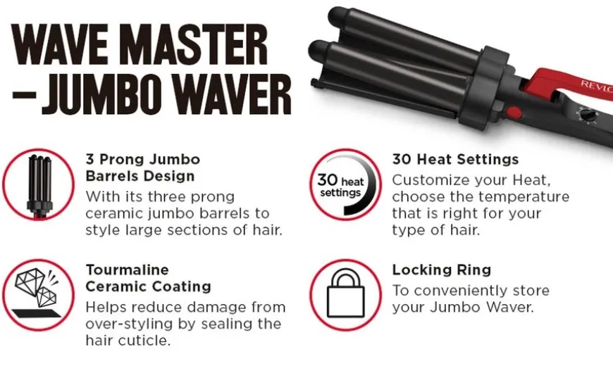 Wave Master Jumbo Waver er en bølgetang som gir deg sprettende, glatte bølger med en frisørsalongfinish som varer fra tidlig morgen til sent på kvelden.