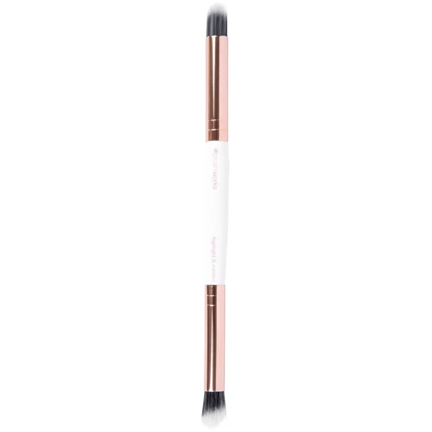 White & Gold Highlight and Contour Brush er designet slik at du kan påføre den perfekte highlighteren og contouren. Kosten er håndskåret og passer til både flytende og ikke-flytende produkter.