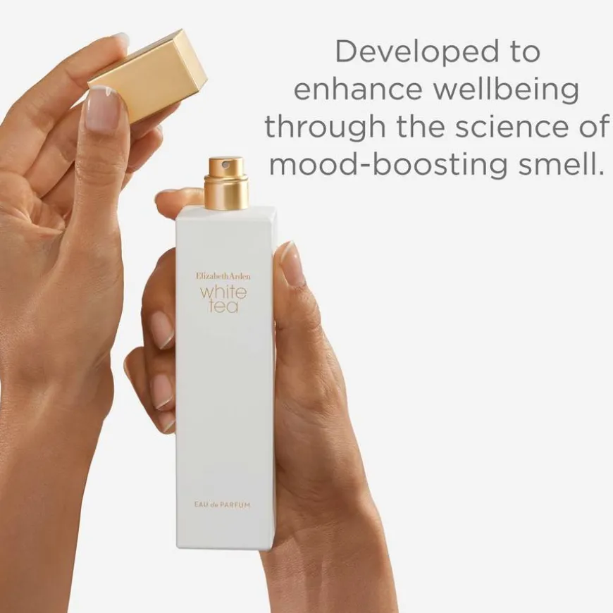 Komponert av høytutdannede parfymører med eksepsjonelle ingredienser. White Tea Eau de Parfum er en parfyme skapt for små gleder. Duften er skapt med VivaScentz™ teknologi, som harmoniserer nøkkelakkordene fra White Tea til en perfekt balanse. White Tea Eau De Parfum oppmuntrer til en følelse av velbehag. I hjertenoten finner du rose, både i form av rose olje og rosevann. Bunn notene runder av parfymen med tonkabønner fra Venezuela, ambertre og musk, noe som gir en varm nyanse til duften.