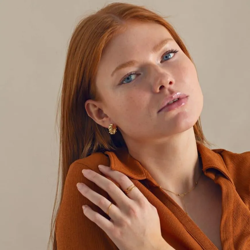 Wild Chunky Texture Hoop Earrings er creol-øredobber med en leken, bølgete overflate som gir en moderne og kul vri på det klassiske hoop-designet. Øredobbene er laget med messingbase og belagt med 18 karat gull for en varm, glansfull finish. Med en innvendig diameter på 11,5 mm er de kompakte, men gir et kraftfullt uttrykk. De lukkes enkelt med et klikk, og er fri for nikkel, kadmium og bly – noe som gjør dem trygge for sensitiv hud.