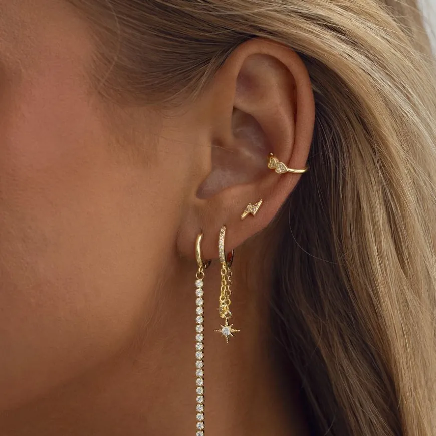 Winny Crystal Stars on Chain Hoop Earrings er et par statement-øredobber designet for å tilføre en luksuriøs touch til antrekket ditt. Med glitrende stjerneanheng som henger fra kjeder, er disse øredobbene ideelle for å styles med din fineste kjole. Perfekt for ekstra spesielle anledninger når du ønsker å føle deg selvsikker og litt ekstra bortskjemt.
